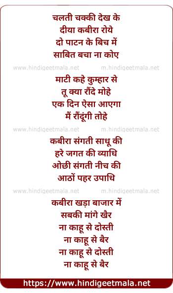 Lyrics of Chalti Chakki Dekh Ke - चलती चक्की देख के