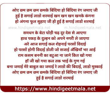 Lyrics of Cham Cham Chamke Bindiya, Ho Bindiya Rang Jamaye - छम छम छमके बिंदिया, हो बिंदिया रंग जमाये