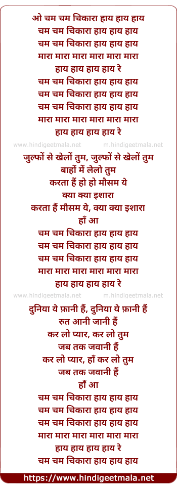 Lyrics of Cham Cham Chikara Haaye - चम चम चिकारा हाय