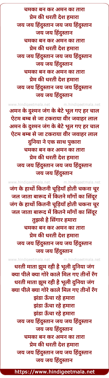 Lyrics of Chamaka Ban Kar Aman Ka Tara - चमका बन कर अमन का तारा
