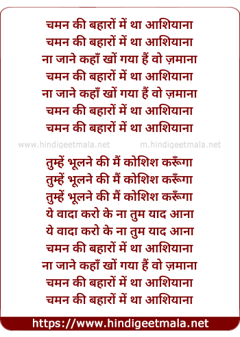 Lyrics of Chaman Ki Baharon Me - चमन की बहारों में था आशियाना