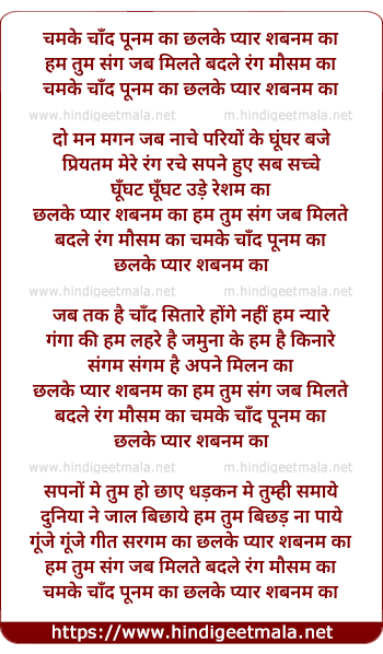 Lyrics of Chamke Chand Poonam Ka - चमके चाँद पूनम का