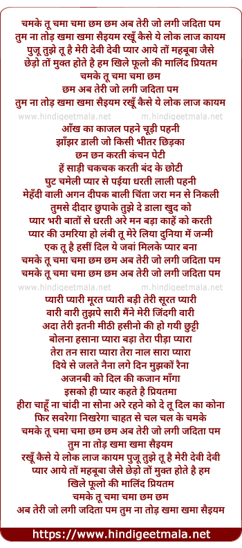 Lyrics of Chamke Tu Chama Chama Chham Chham - चमके तू चमा चमा छम छम अब तेरी जो लगी जदिता पम