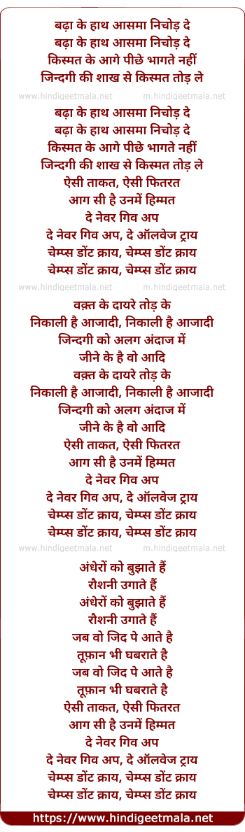 Lyrics of Champs Don't Cry - चेम्प्स डोंट क्राय
