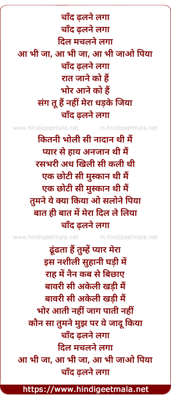Lyrics of Chand Dhalne Laga - चाँद ढ़लने लगा