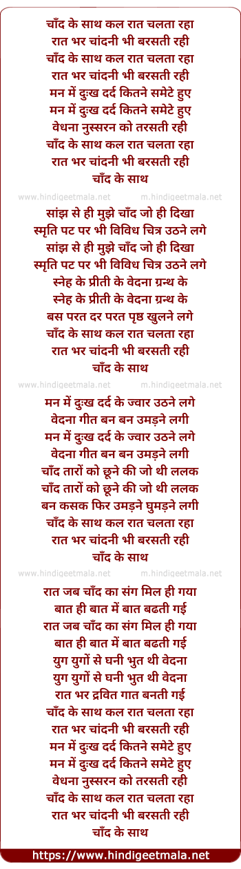 Chand Ke Saath - चाँद के साथ कल रात चलता रहा