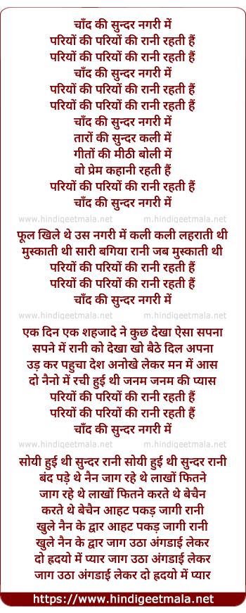 Lyrics of Chand Ki Sundar Nagri Mai - चाँद की सुन्दर नगरी में
