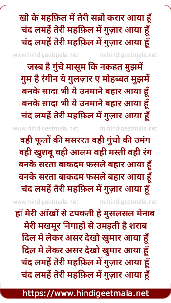 Lyrics of Chand Lamhe Teri Mehfil Me - खो के महफ़िल में तेरी सब्रो करार आया हूँ