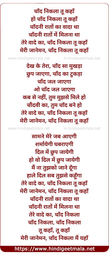 Lyrics of Chand Nikla - चाँद निकला तू कहाँ