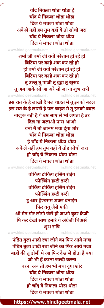 Lyrics of Chand Nikla Thoda Thoda - चाँद निकला थोडा थोडा
