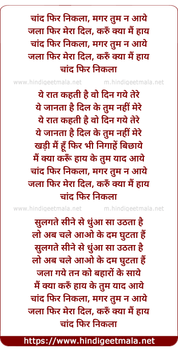 Lyrics of Chand Phir Nikla, Magar Tum Na Aaye - चांद फिर निकला, मगर तुम ना आये