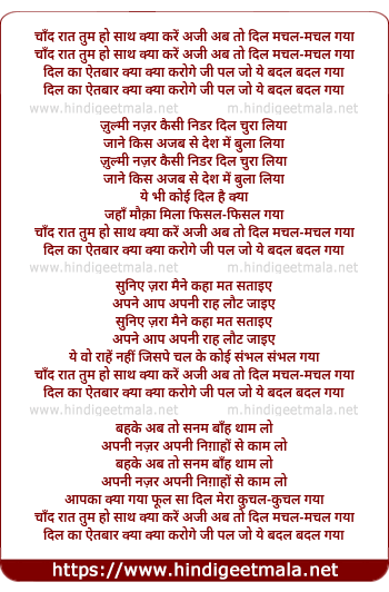 Lyrics of Chand Rat Tum Ho Sath Kya Kare - चाँद रात तुम हो साथ क्या करें