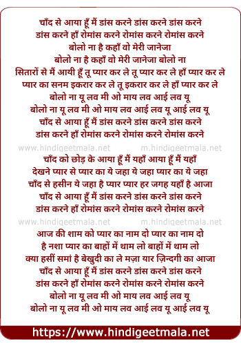 Lyrics of Chand Se Aaya Hoon - चाँद से आया हूँ