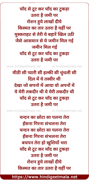 Lyrics of Chand Se Toot Kar Chand Ka Tukda - चाँद से टूट कर चाँद का टुकड़ा