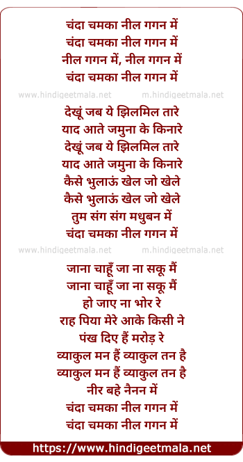 Lyrics of Chanda Chamka Neel Gagan Me - चंदा चमका नील गगन में
