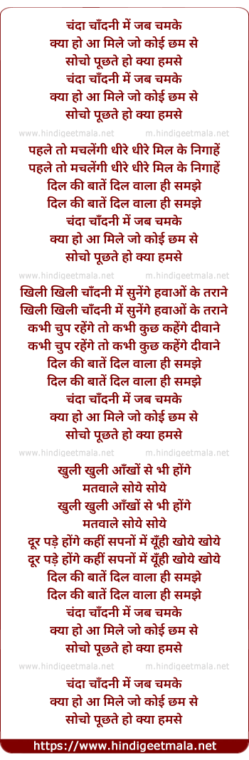 Lyrics of Chanda Chandni Me Jab Chamke - चंदा चाँदनी में जब चमके