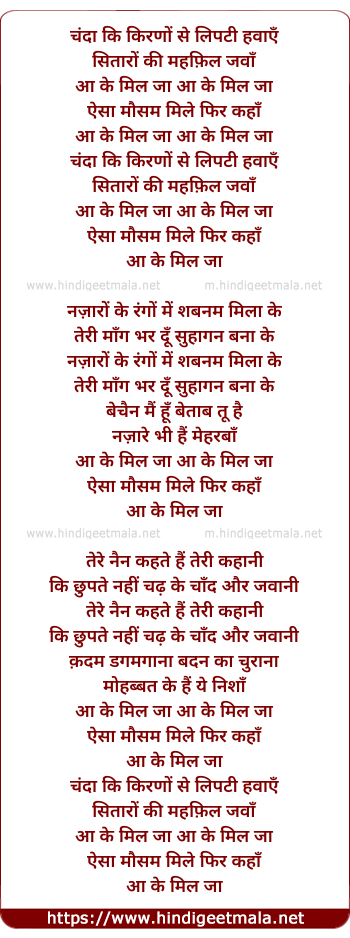 aa ke mil jaa aa ke mil jaa