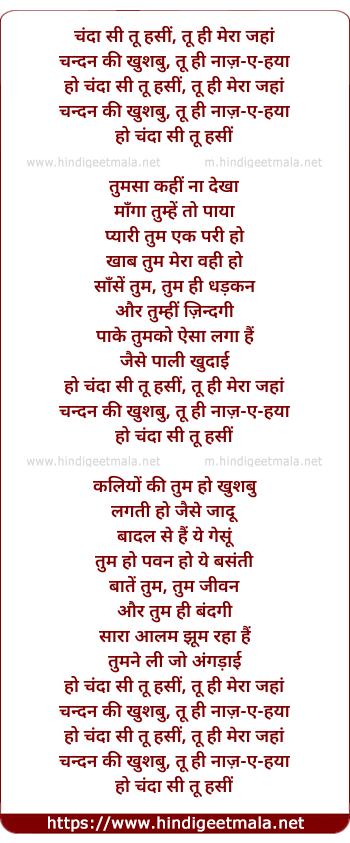 Poetic Translation - Lyrics of Chanda Si Tu Haseen - चंदा सी तू हसीं