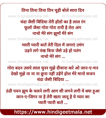 Lyrics of Chanda Jaisi Bindiyaa Teri - चंदा जैसी बिंदिया तेरी