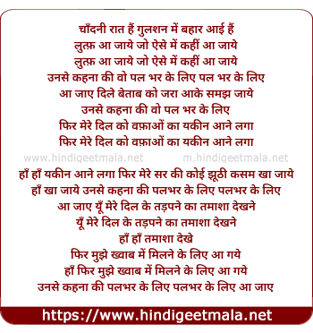 Lyrics of Chandni Raat Hai Gulshan Me Bahar - चाँदनी रात हैं गुलशन में बहार आई हैं