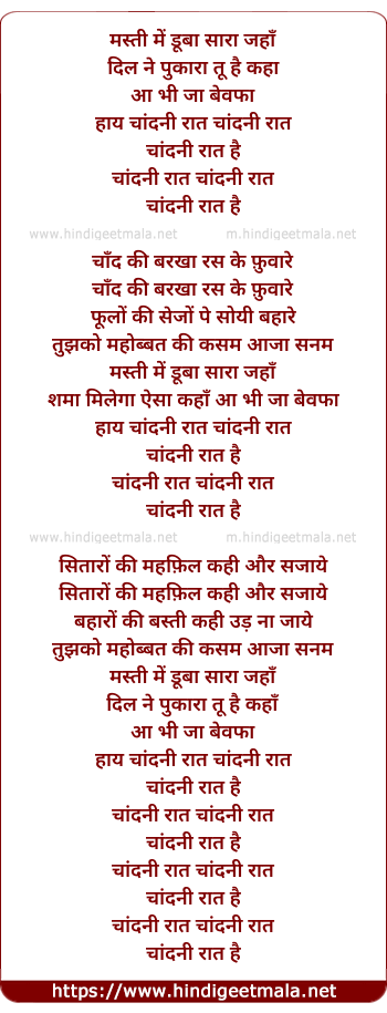 Lyrics of Chandni Raat Masti Me Dooba - चांदनी रात मस्ती में डूबा