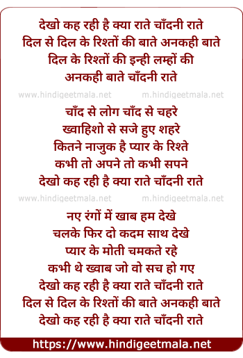Lyrics of Chandni Raate (Club Mix) - देखो कह रही है क्या राते चाँदनी राते