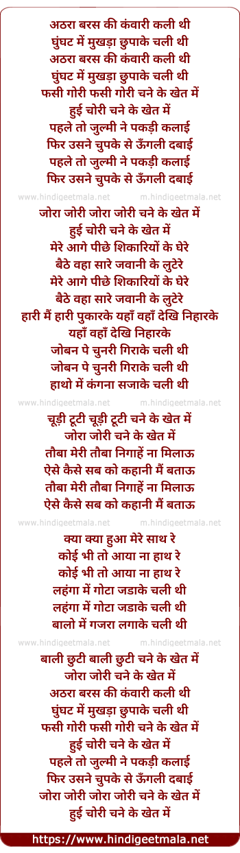 Lyrics of Chane Ke Khet Me Athra Baras Ki Kawari Kali Thi - चने के खेत में अठरा बरस की कंवारी कली थी