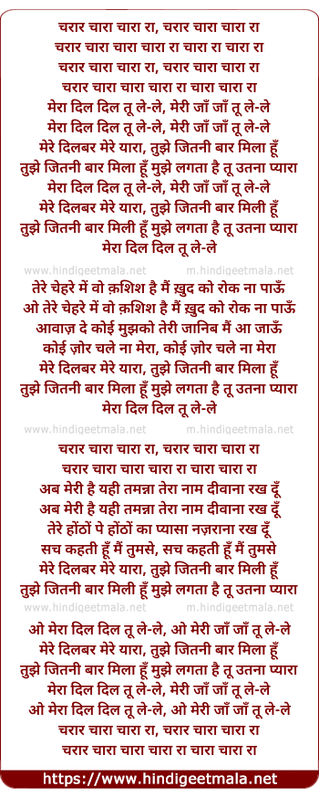 Lyrics of Charar Chaaraa, Mujhe Lagta Hai Tu Utna Pyara (Mera Dil Dil Tu Le Le) - चरार चारा चारा रा, चरार चारा चारा रा