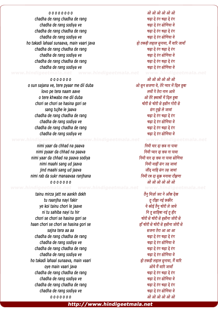 Lyrics of Charha De Rang (Rahat Fateh Ali Khan Version) - ओ ओ ओ ओ ओ ओ