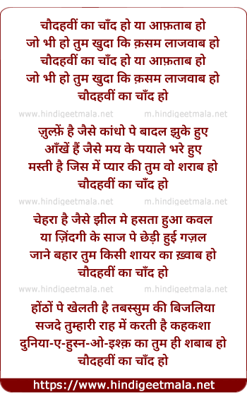 Lyrics of Chaudhavi Ka Chand Ho, Ya Aaftab Ho - चौदहवीं का चाँद हो
