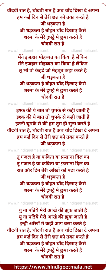 Lyrics of Chaudhvin Raat Hai Ab Chand Dikha De Apna - चौदवी रात है अब चांद दिखा दे अपना