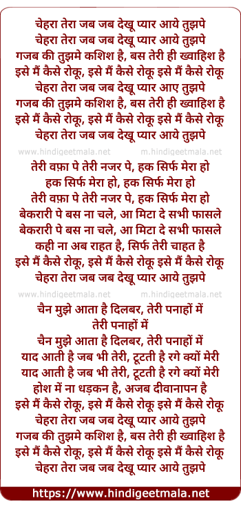Lyrics of Chehra Tera Jab Jab Dekhu - चेहरा तेरा जब जब देखू