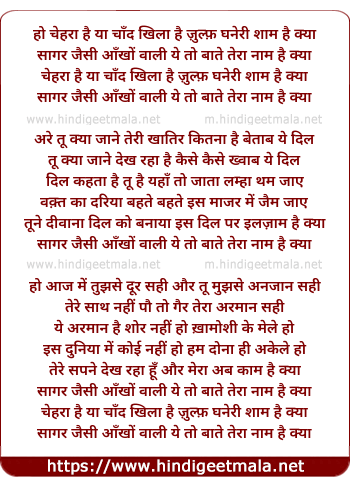 Lyrics of Chehara Hai Ya Chaand Khilaa Hai - चेहरा है या चाँद खिला है