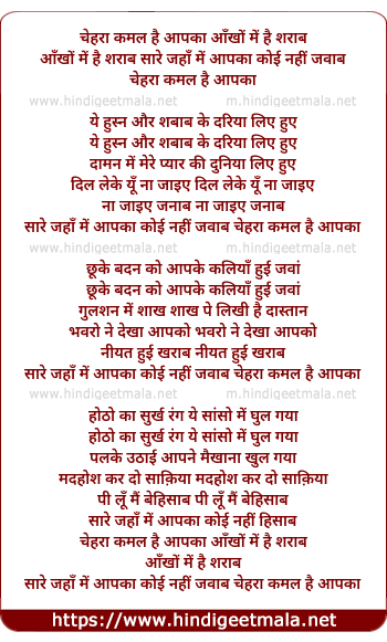 Lyrics of Chehra Kamal Hai Aapka Ankho Me Hai Sharab - चेहरा कमल है आपका आँखों में है शराब