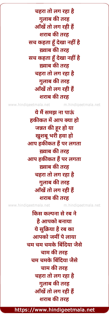 Lyrics of Chehra Toh Lag Raha Hai - चहरा तो लग रहा है
