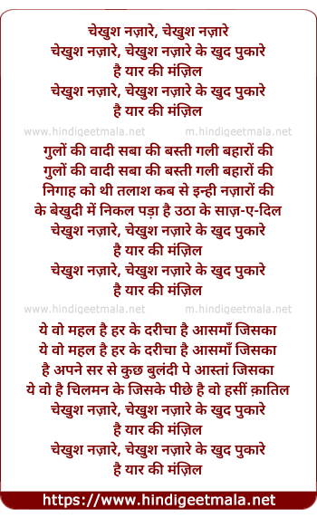 Lyrics of Chekhush Nazaare Ke Khud Pukaare Hai - चेखुश नज़ारे के खुद पुकारे है