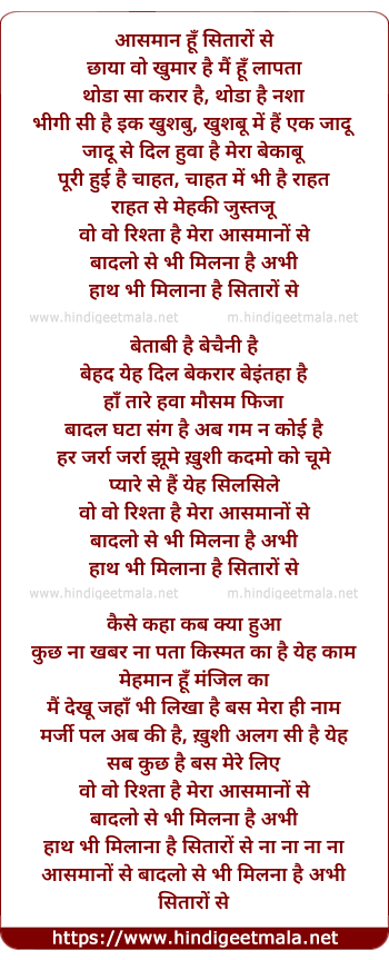 Lyrics of Chhaaya Woh Khumaar Hai - छाया वो खुमार है