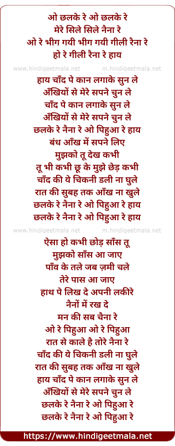 Lyrics of Chhalke Re - छलके रे
