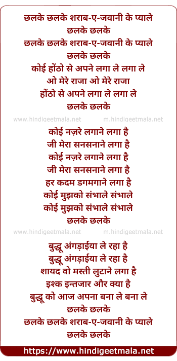 Lyrics of Chhalke Sharab E Jawani Ke Pyale - छलके छलके शराब-ए-जवानी के प्याले