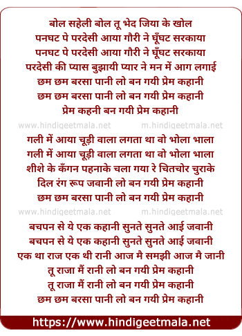 Lyrics of Chham Cham Barsa Pani Lo Ban Gayi Prem Kahani - छम छम बरसा पानी लो बन गयी प्रेम कहानी