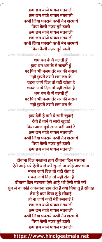 Lyrics of Chham Chham Baje Payal Matwali - छम छम बाजे पायल मतवाली
