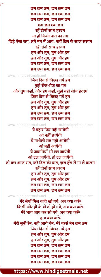 Lyrics of Chham Chham Chham Chham (Rahe Dono Saath Hardam) - छम छम छम, छम छम छम