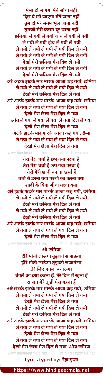 chhamiya, le gayi le gayi oye le gayi le gayi