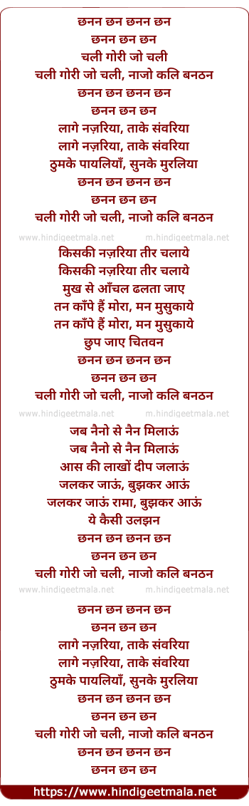 Lyrics of Chhananan Chhun Chhun Chhun - छनन छन छन छन