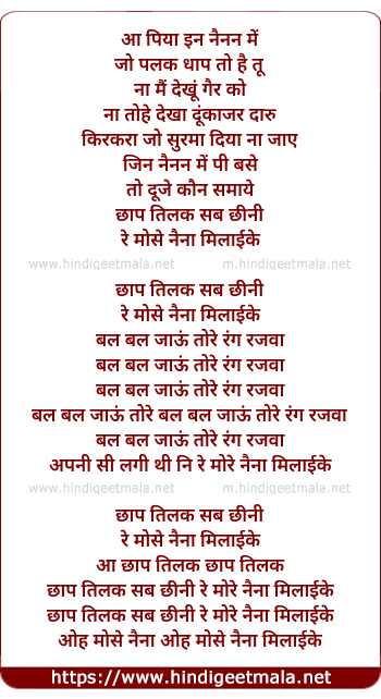 Lyrics of Chhap Tilak Sab Chhini - छाप तिलक सब छिनी