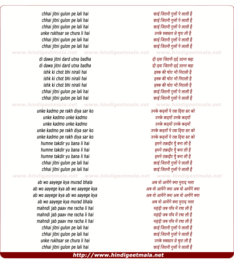 Lyrics of Chhayi Jitni Gulon Pe Lali Hai - छाई जितनी गुलों पे लाली है