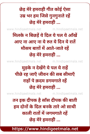 Lyrics of Chhed Mere Hamrahi Geet Koi - छेड़ मेरे हमराही गीत कोई ऐसा
