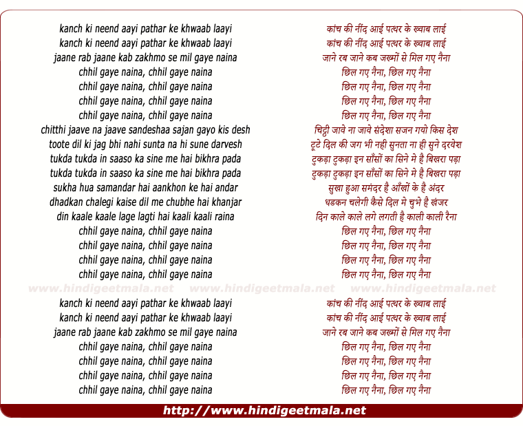 Lyrics of Chhil Gaye Naina Kaanch Ki Nind Aayi - छिल गए नैना कांच की नींद आई