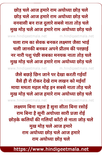 Lyrics of Chhod Chale Aaj Hamare Ram Ayodya Chhod Chale - छोड़ चले आज हमारे राम अयोध्या छोड़ चले