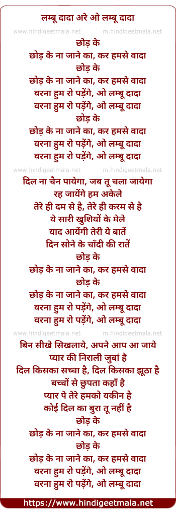 Lyrics of Chhod Ke Na Ja - लम्बू दादा अरे ओ लम्बू दादा